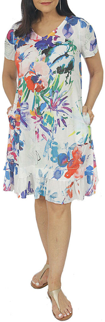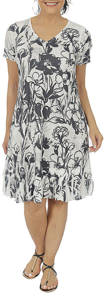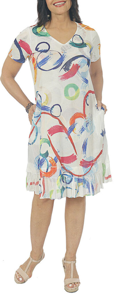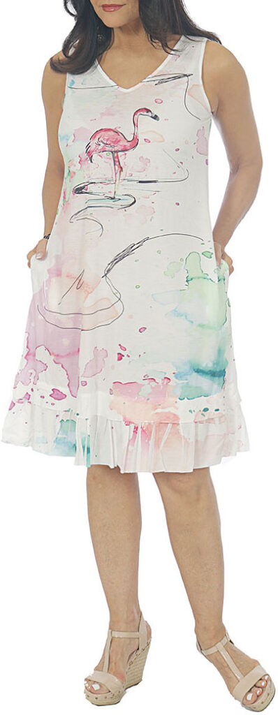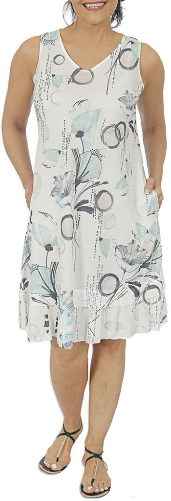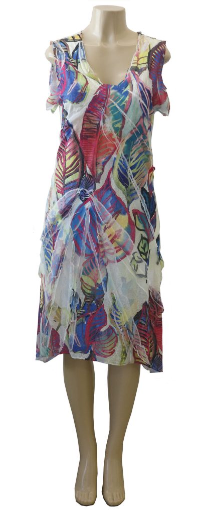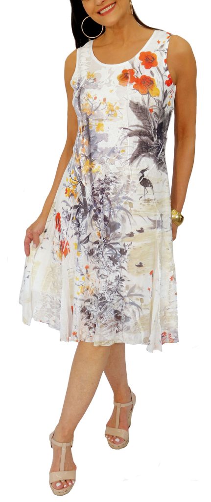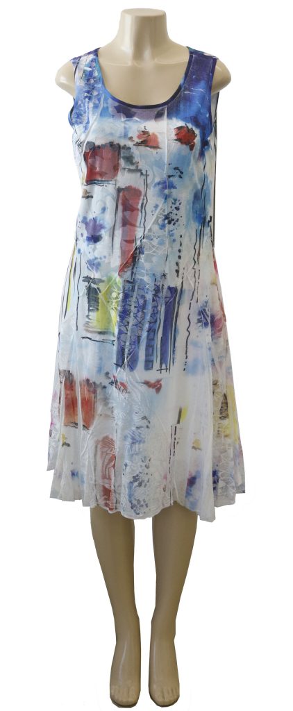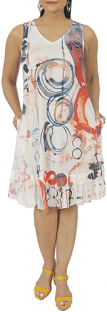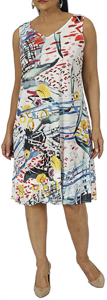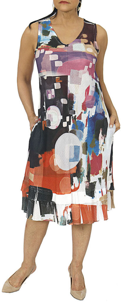 Mixed Media Dress, Sleeveless V-neck w/asymmetrical hemline
