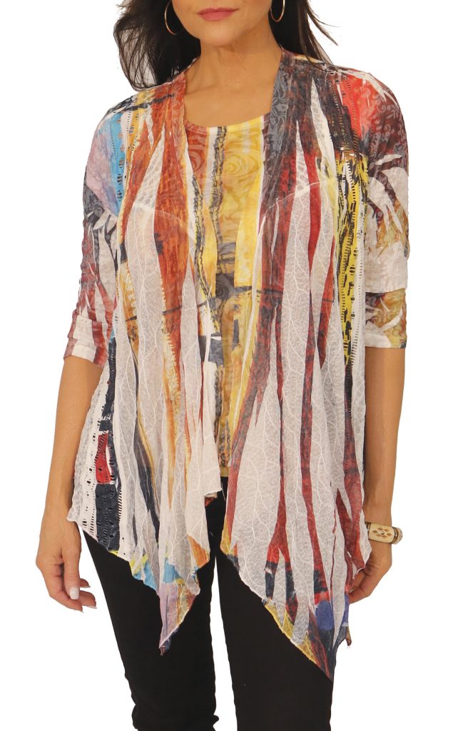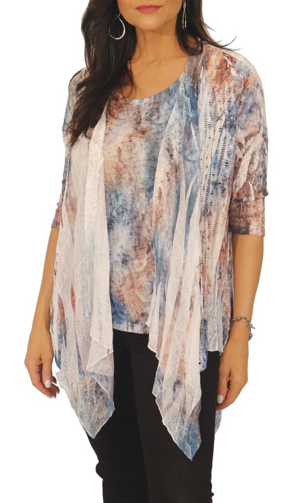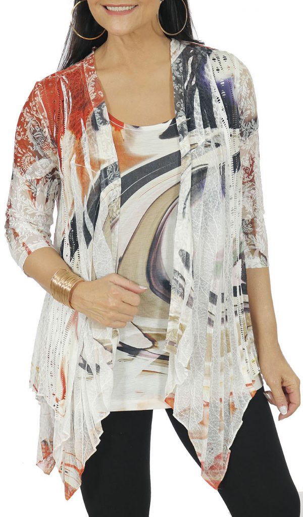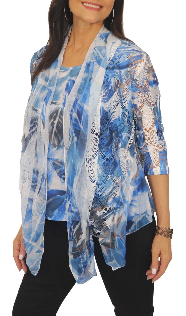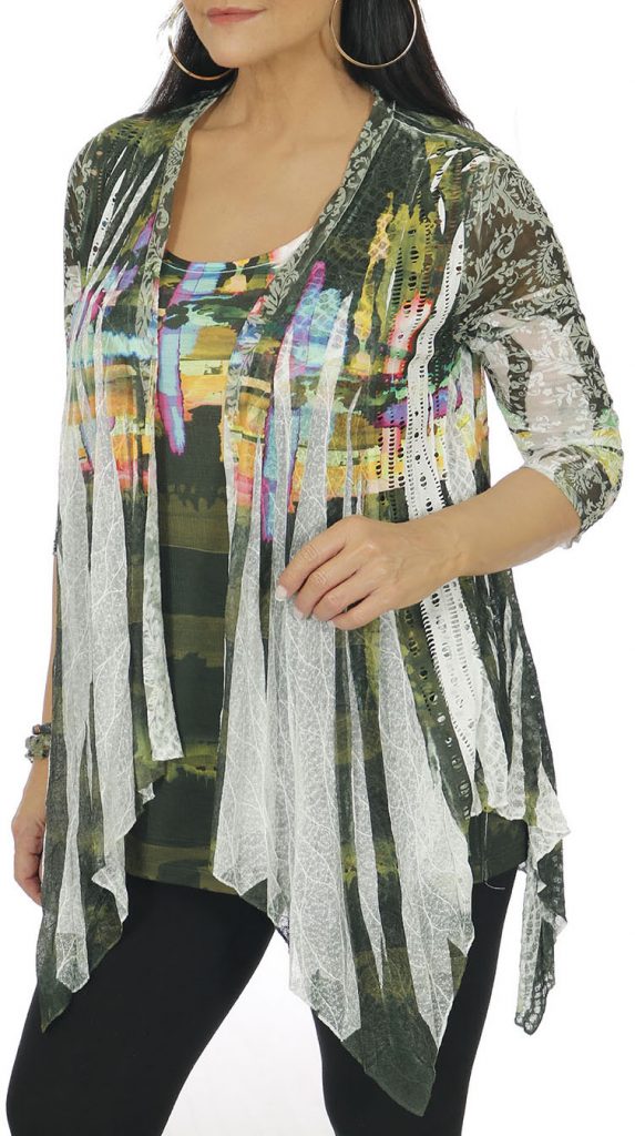 2 pc. Set: 3/4 sleeve cardigan made out of crochet laces, chiffon details & a separate printed tank