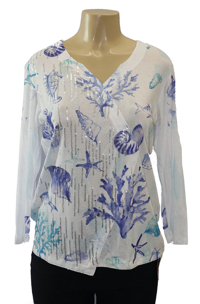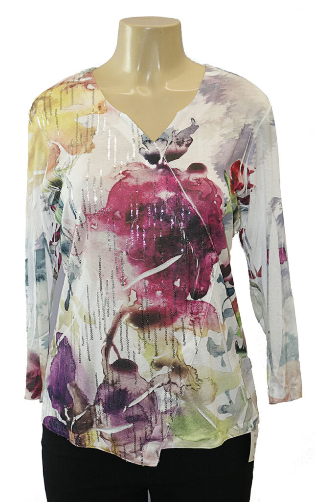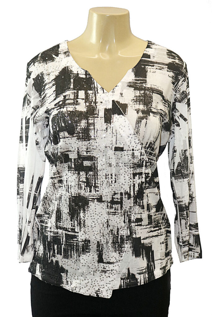 V-neck top w/partial sequins