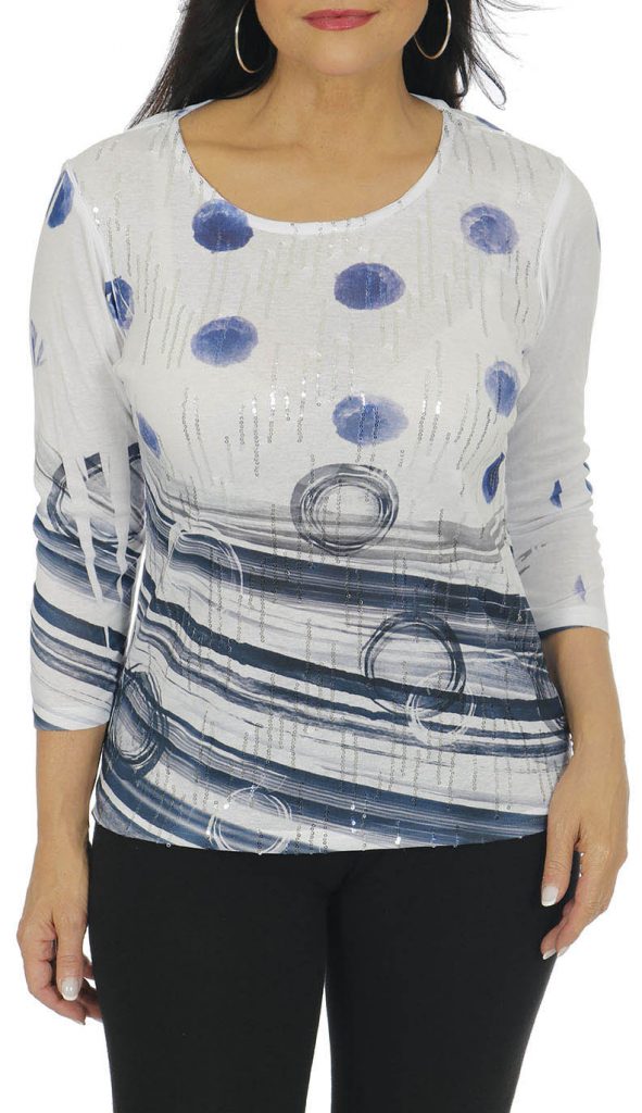 Scoop neck top w/partial sequins