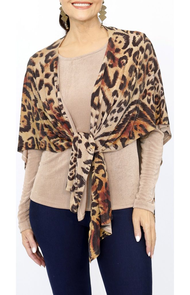 2 Pc. Set: Shawl with unattached 3/4 sleeve tan shirt